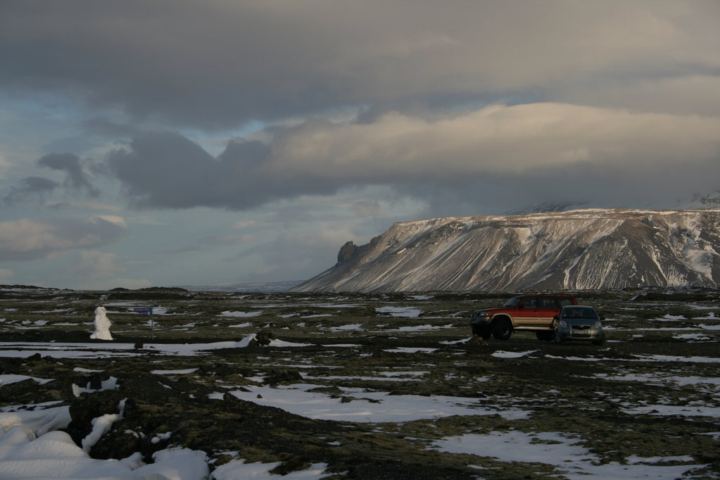 Na "parkovišti" zatím vyrost sněhulák a další (větší) auto